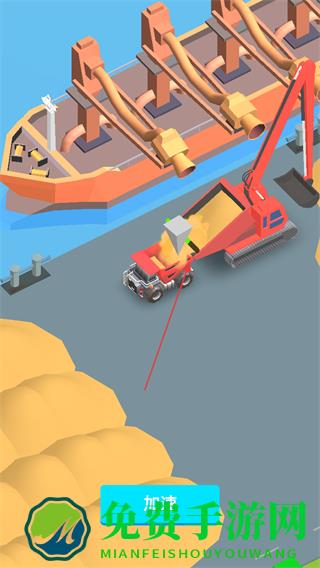 2、挖掘机将沙土装入卡车,点击加速可提升运输效率。