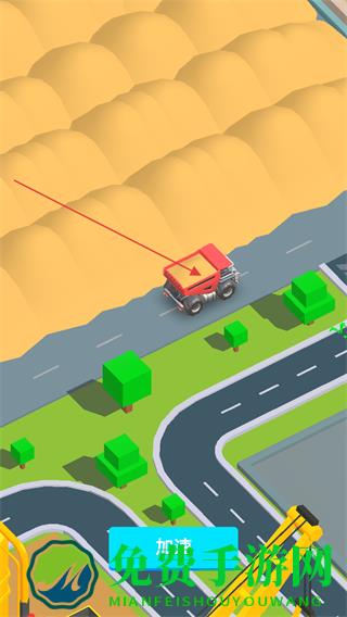 3、卡车运输沙土到加工区域,点击加速推进运输流程。
