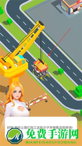 4、在加工区域将沙土加工成砖块并销售,点击相关设施加速加工和销售进程,开启沙地产业的发展。