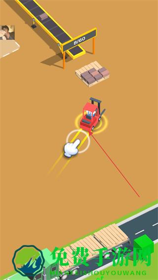 1、在工厂场景中,利用传送带运输货物,将货物送至指定区域。