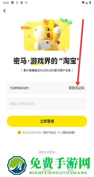 3、在登录界面点击“获取验证码”,输入收到的验证码。