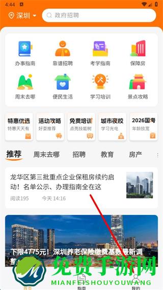 2.深圳上线了办事新页面,目前进入办事攻略,点击身份证、居住证、落户、婚姻事、补贴、公租房、安居房、车牌即可体验