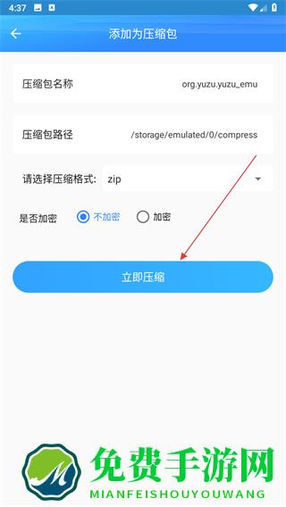 4、在添加为压缩包页面,点击立即压缩按钮。