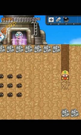 3、为救出自己心爱的女朋友,阿空拿出自己的钻头,踏上了征途,把开采的矿物卖掉,博士会提供一些道具,或者帮你升级装备。