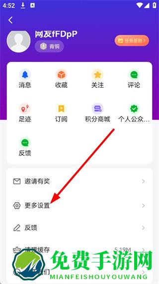 2、在个人页面,点击更多设置,进入更多设置页面。