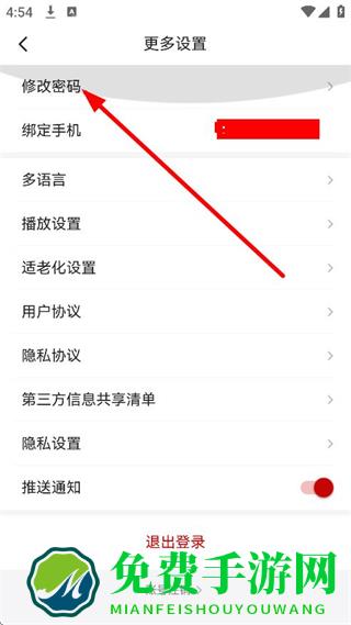 3、在更多设置页面,点击修改密码,进入修改密码页面。