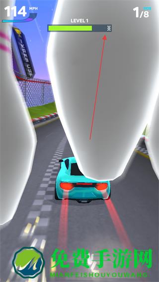 4、驾驶赛车冲向终点,完成Level1比赛,解锁后续关卡。