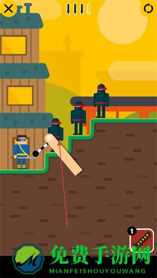 1、观察忍者和敌人站位,调整飞削角度,瞄准敌人。