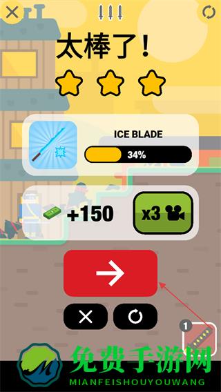 4、成功通关,获得三星评价和金币奖励,点击箭头按钮进入下一关。
