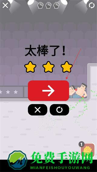 4、成功击败所有对手后,获得三星评价,点击箭头按钮进入下一关。