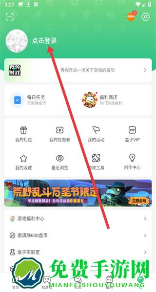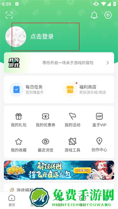 1、在进入到433游戏盒首页中,可以点击下方我按钮,进入我的主页。