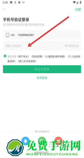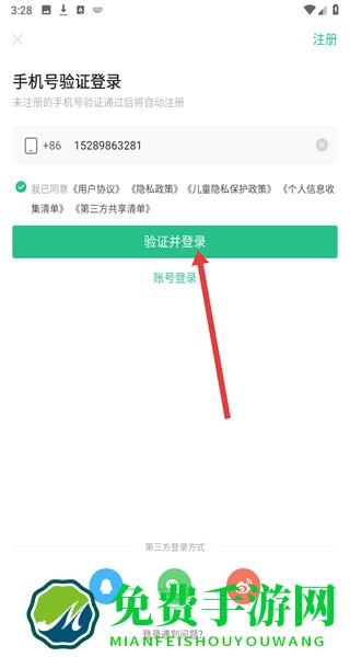 3、在进入到手机号验证登录界面,输入好手机号后点击验证并登录按钮。