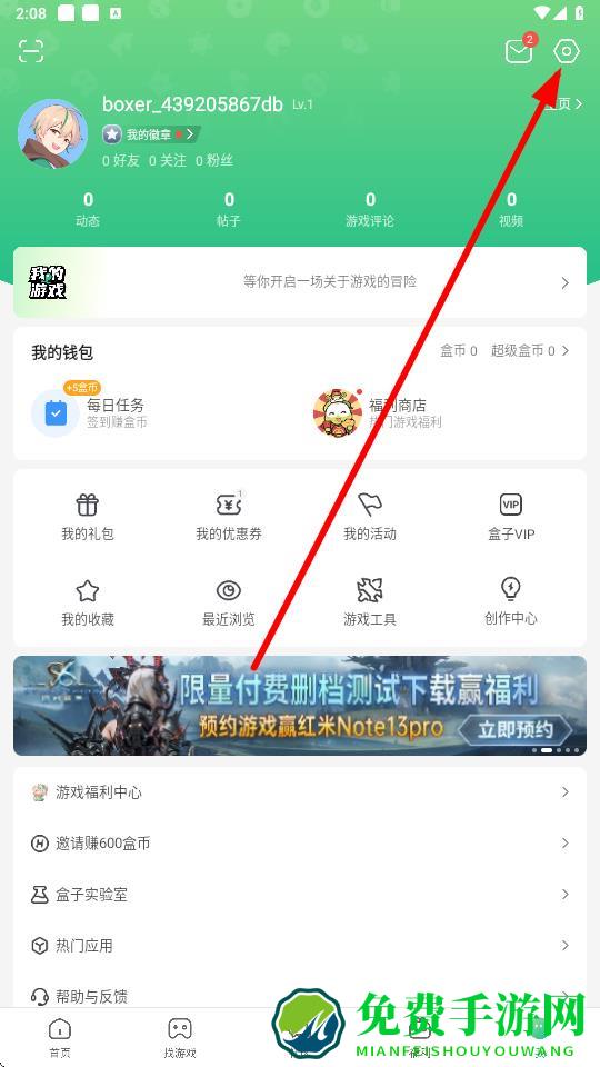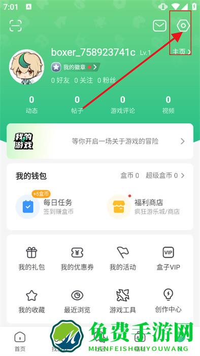 1、进入4399游戏盒我页面,点击右上角设置图标进入设置界面。
