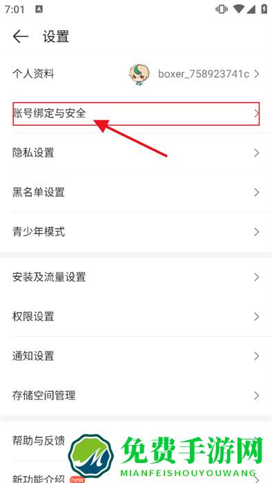 3、紧接着,找到【账号绑定与安全】,点击进入;