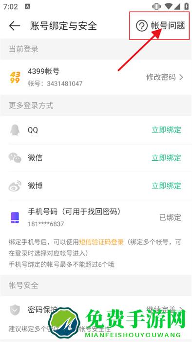 4、再次跟着小编找到右上角【账号问题】,如下图所示;