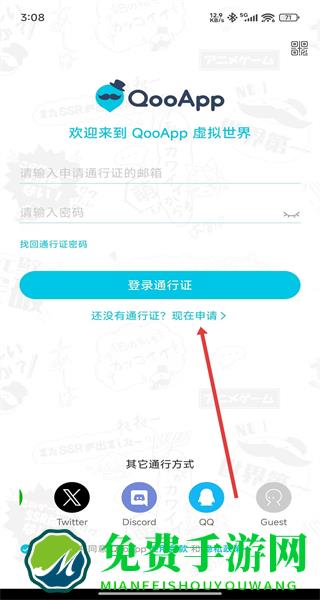 1、在进入到应用登录页面中,若没有账号,可以点击现在申请按钮,进行申请注册。