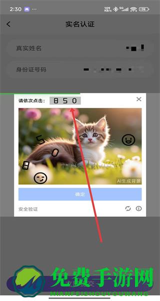 3、在提交实名认证信息后,需完成安全验证依次点击8、5、0。