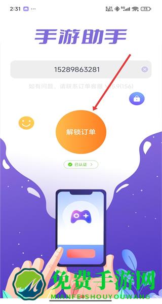 4、返回“手游助手”页面点击“解锁订单”,完成订单解锁流程。