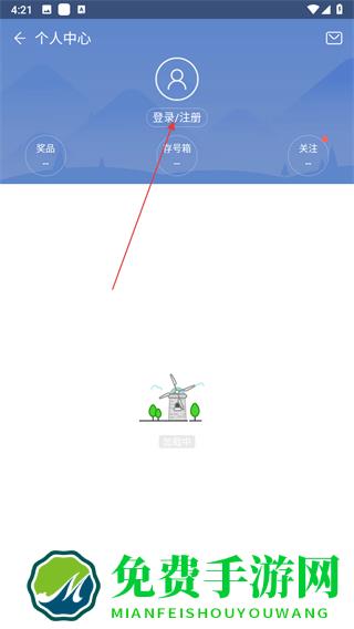 2、在个人中心页面,点击登录/注册按钮,弹出登录注册界面。