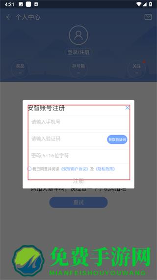3、在登录注册界面,点击快速注册选项,进入安智账号注册页面。