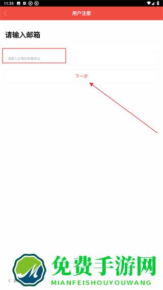 3、在邮箱注册的页面内,输入邮箱账号再点击下一步即可。