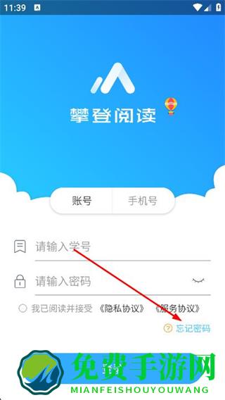 1、打开攀登阅读app,在登录页面,找到并点击右下方的忘记密码选项。