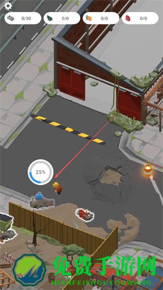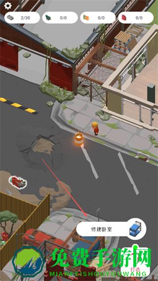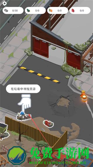 1、在废墟场景中寻找资源如建筑材料等,点击资源点进行采集,积累资源数量。