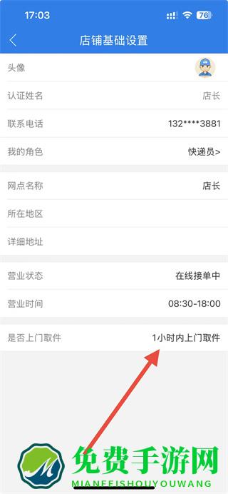 3、进入店铺基础设置页面后,点击是否上门取件选项。