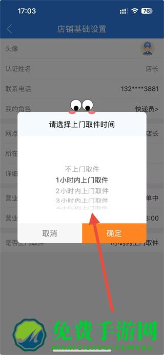4、在上门取件时间选择页面,选择需要的取件时间后点击确定即可完成修改操作。