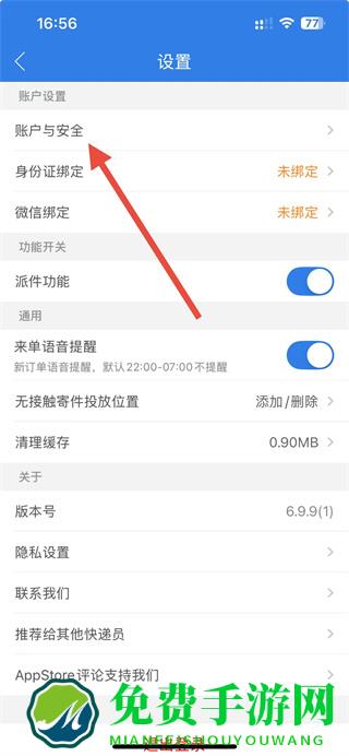 3、进入设置页面后,点击账户与安全选项。