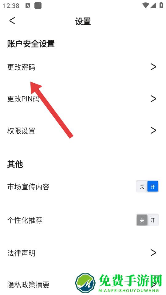 2、在设置页面中,点击更改密码的选项,进入身份验证的环节。