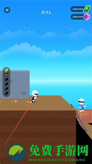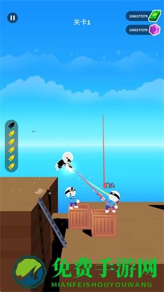 1、在关卡1中,操控神枪手移动至合适位置,瞄准敌方目标。