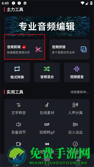 1、在APP工具界面点击“音频剪辑”功能。