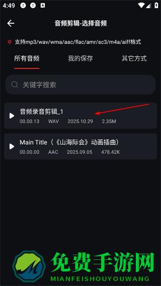 2、进入选择音频界面后点击要剪辑的音频文件。