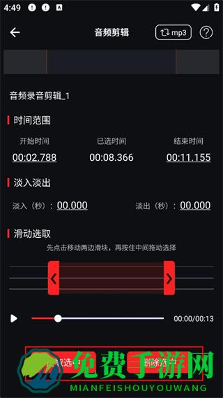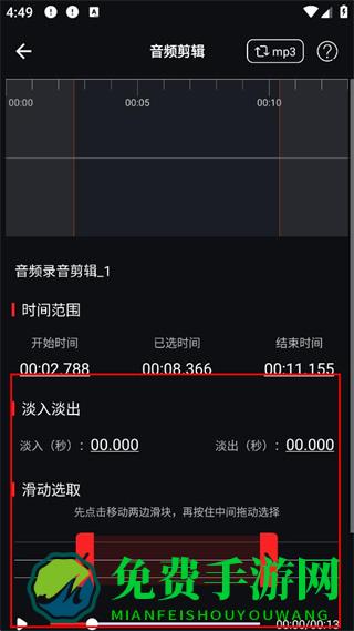 3、在音频剪辑界面通过滑动滑块选取剪辑范围。