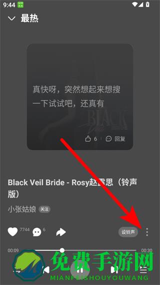 2、在铃声播放页面,点击右侧三点按钮,弹出功能菜单。