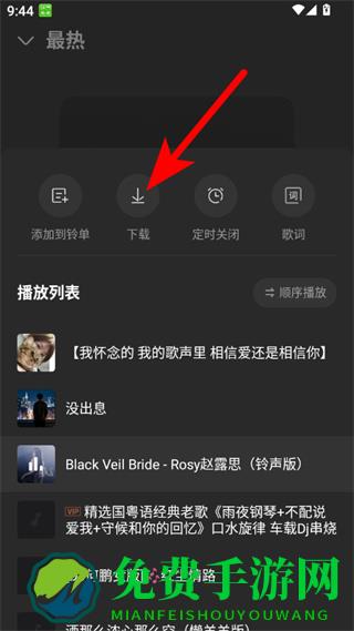 2、在音乐播放页面,点击右侧三点图标,展开功能菜单。