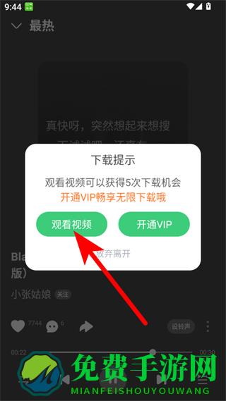 4、在下载提示框中,点击观看视频按钮,获取下载机会后即可下载该铃声。