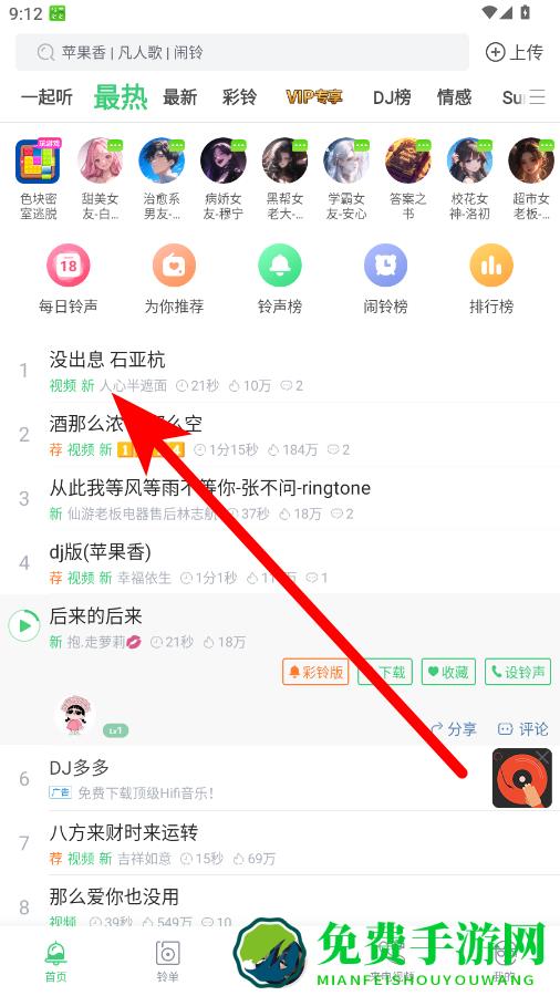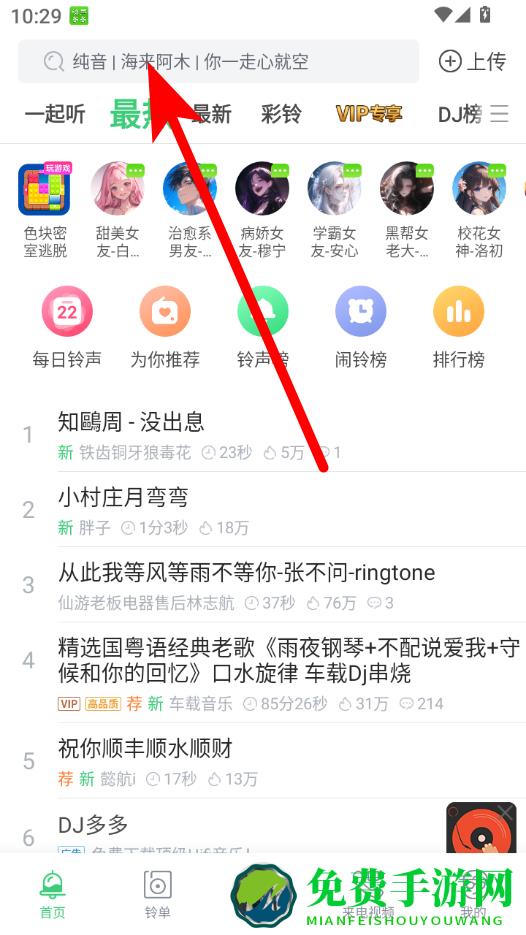 1、打开铃声多多APP,在首页浏览或搜索找到喜欢的铃声。