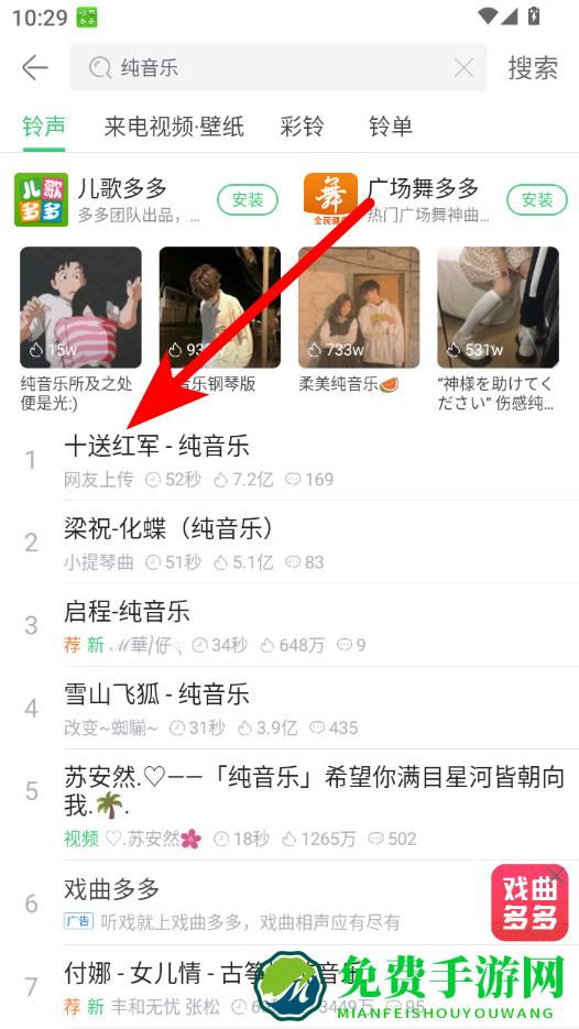 1、在铃声多多首页,点击想要下载的铃声,进入铃声播放页面。
