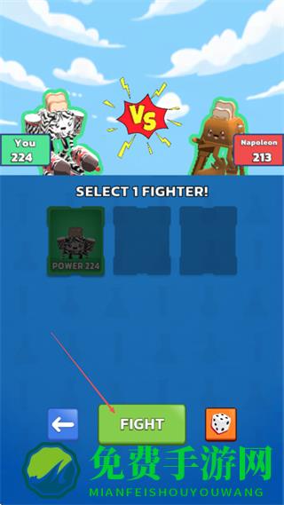 1、选择战力匹配的格斗士,点击FIGHT进入战斗。