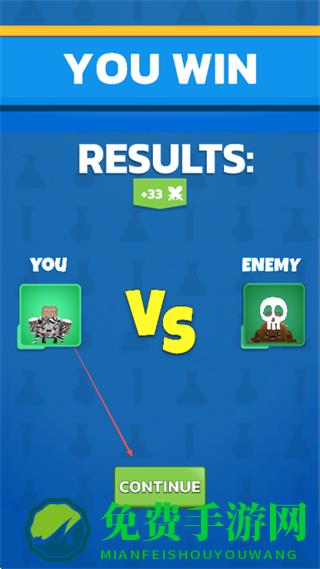 4、击败敌方后,点击CONTINUE继续挑战下一关。