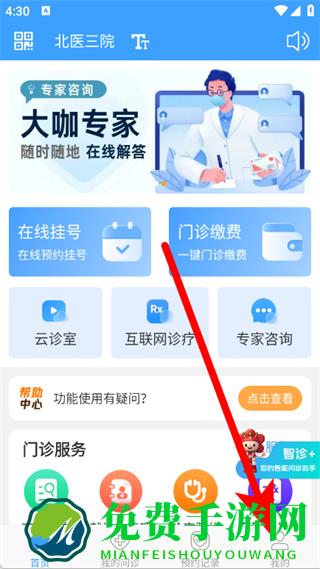 1、打开北医三院,点击底部导航栏我的,进入个人中心。