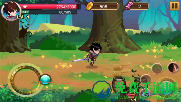 4、在森林中移动探索,攻击怪物、收集金币,利用技能和道具,不断提升角色战力以推进游戏。