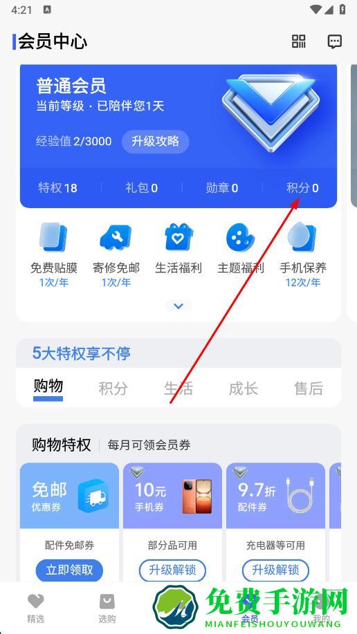 2、在会员中心页面中,找到并点击积分字样区域,该区域会显示您当前的积分数量。