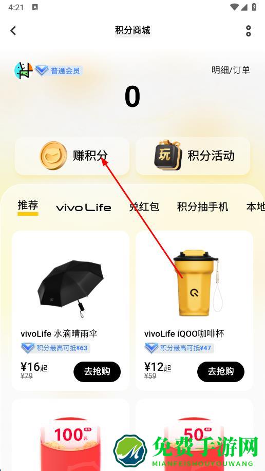 3、进入积分商城页面,点击赚积分,获得更多积分。