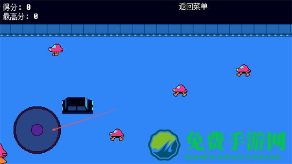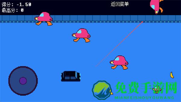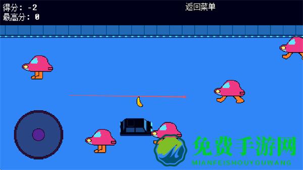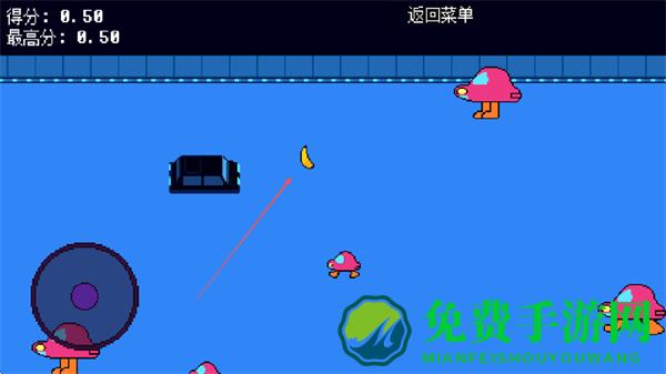 1、用左侧圆形摇杆操控黑色物体、躲避粉色蘑菇敌人、收集香蕉增分、别被敌人碰到扣分。