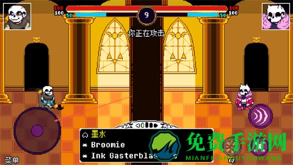1、操控角色攻击敌方,可选择墨水类技能如InkGasterblasters发起进攻。