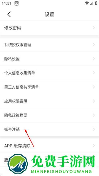 3、在设置页面,点击账号注销选项,进入注销账号页面。