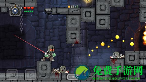 1、操控角色在城堡场景中移动,攻击骷髅类敌人,收集金币。